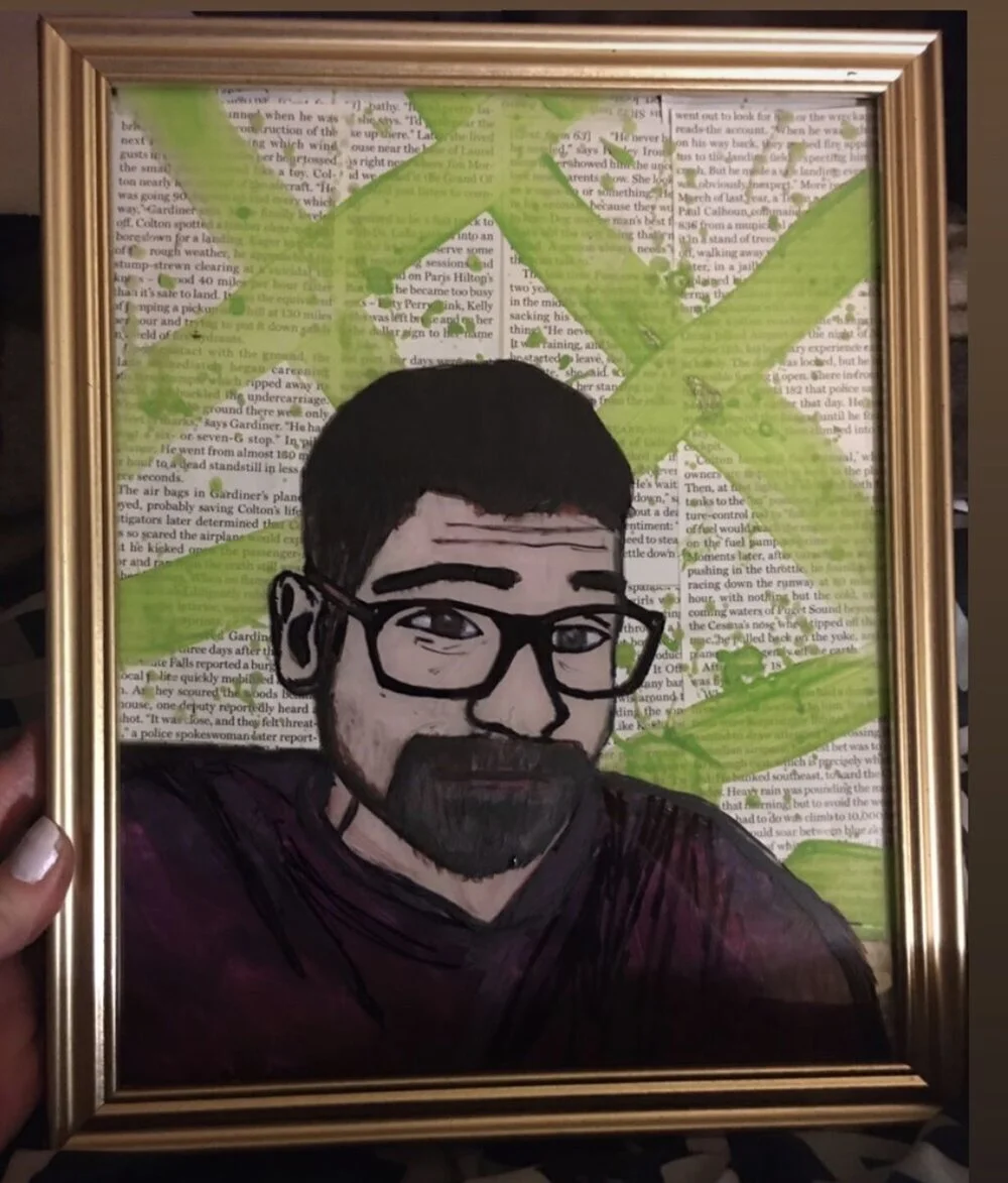 Caleb Jun 28 Written By Jill Balentino Mixed Media. Acrylic Paint, Sharpie, and Collage in a Picture Frame. 2019 artcollage Jill Balentino Hello, Iām Jill. https://www.sporadic2bme.com