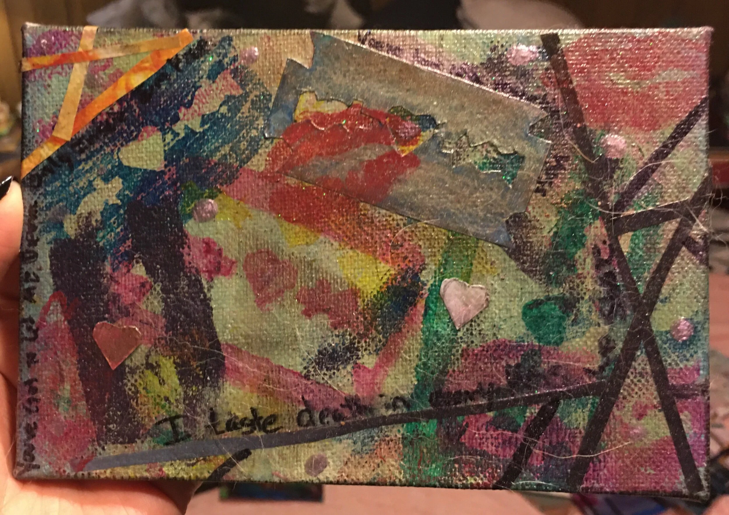 Razorblade Kiss Aug 10 Written By Jill Balentino Mixed Media: Acrylic Paint, Collage, Eyeliner, Eye shadow, and Lipstick 2020 Jill Balentino Hello, Iām Jill. https://www.sporadic2bme.com