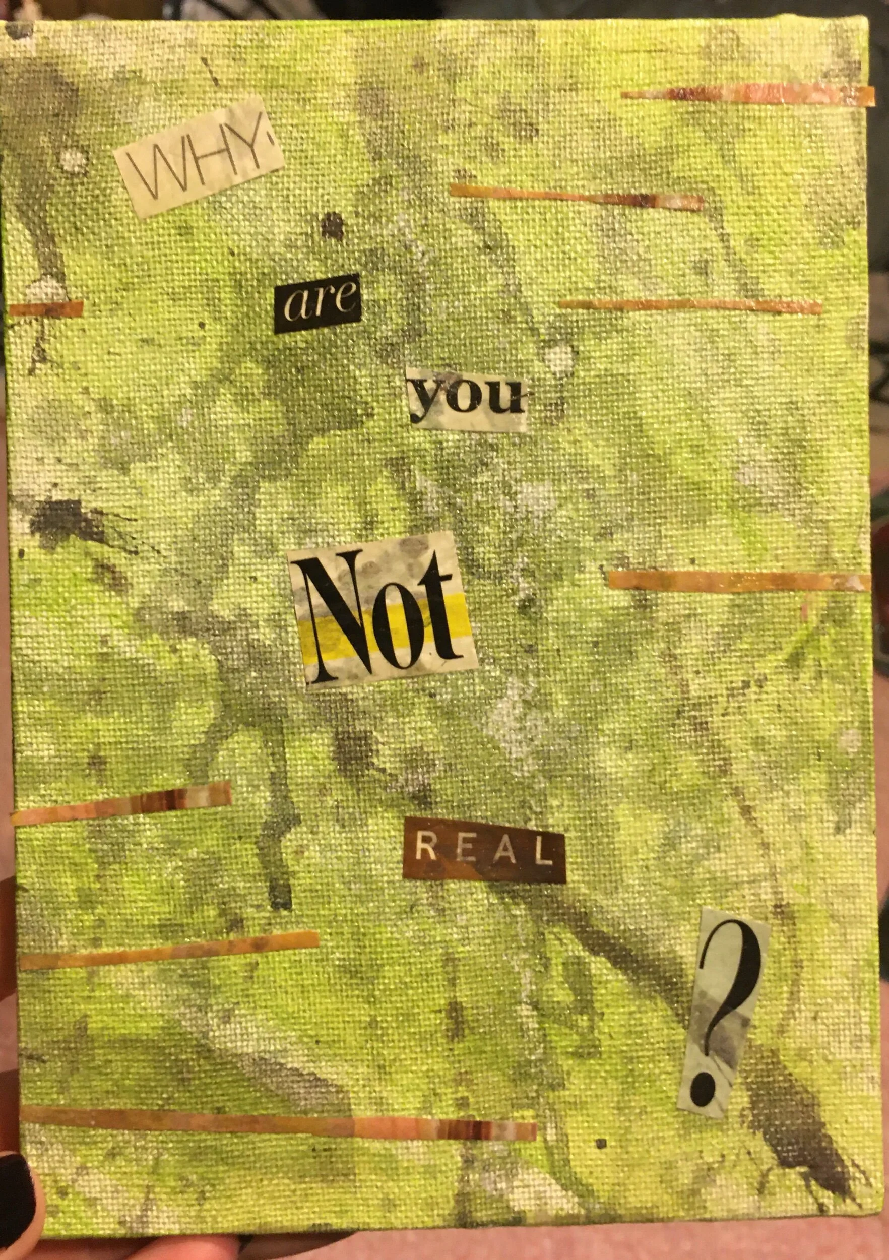 Why are you not Real? Aug 10 Written By Jill Balentino Acrylic Paint and Collage 2020 artcollage Jill Balentino Hello, Iām Jill. https://www.sporadic2bme.com