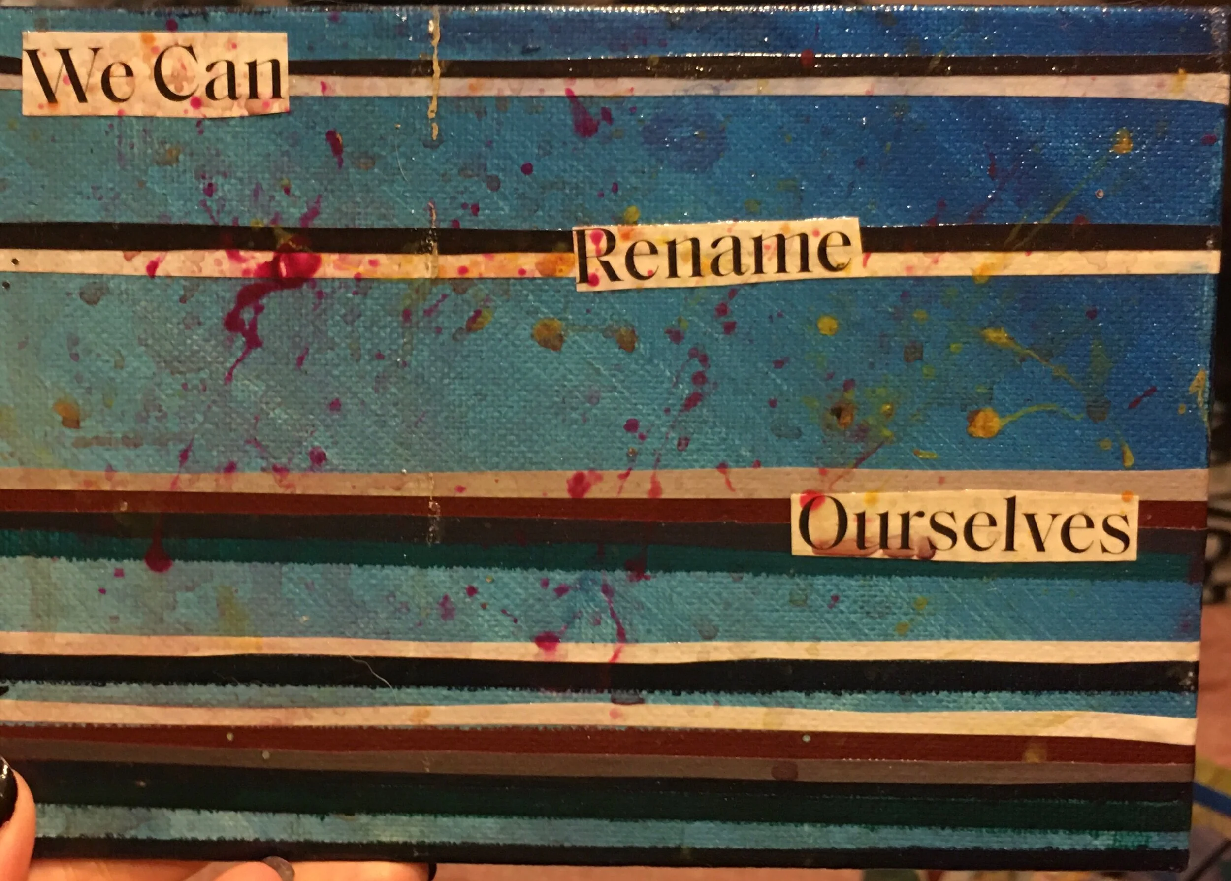 Rename Ourselves Aug 10 Written By Jill Balentino Acrylic Paint and Collage. 2020 Jill Balentino Hello, Iām Jill. https://www.sporadic2bme.com