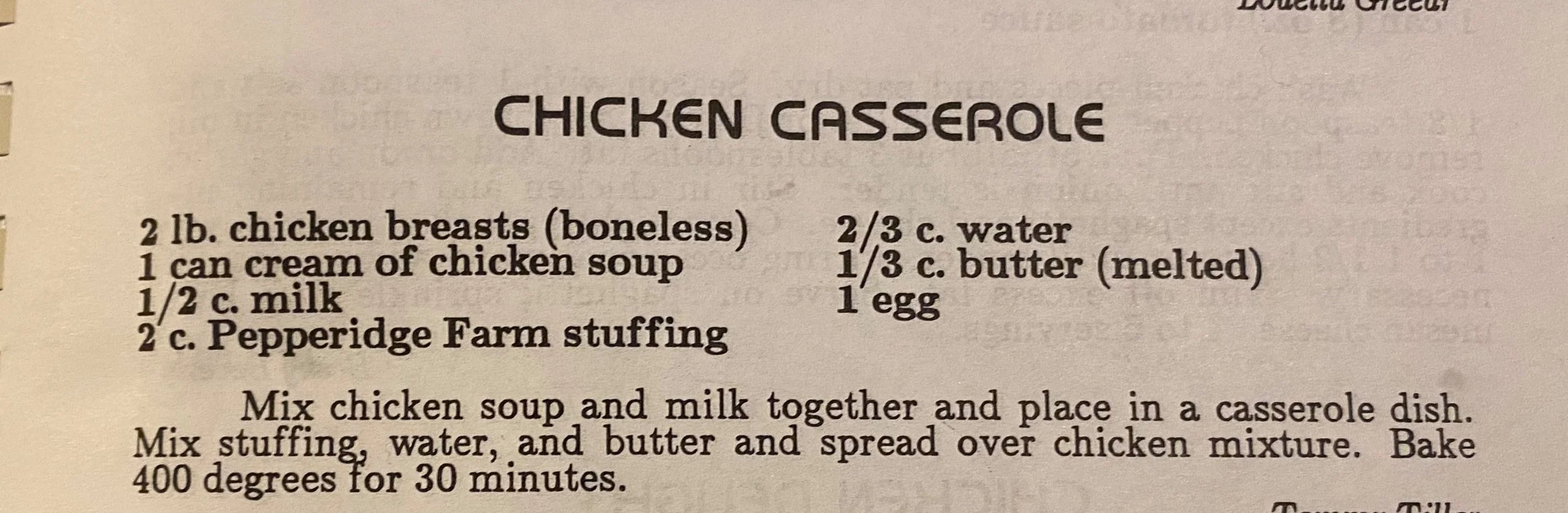 Grease the baking dish and add Chicken, Cream of Chicken Soup, Sour Cream, and Cheese and mix it all up.