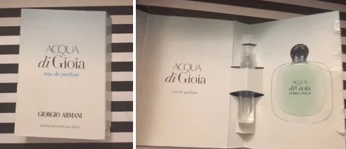 Acqua di Gioia by Giorgio Armani Beauty. This is a light scent that kind of reminds me of the ocean. It not overly powerful but if you layer it up it would definitely good be for it. It's a really nice scent, not one I would personally purchase myself though.