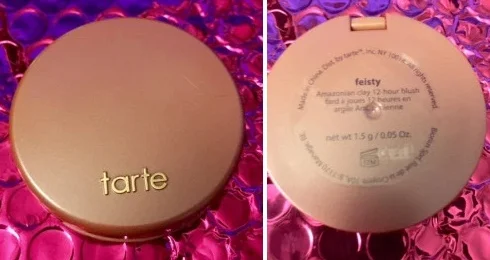 Tarte Deluxe Amazonian Clay 12-Hour Blush in Feisty. I love Tarte so when I saw this was in the bag I'm was super excited. I have this one in Paaarty, which is almost the same color just pinker.