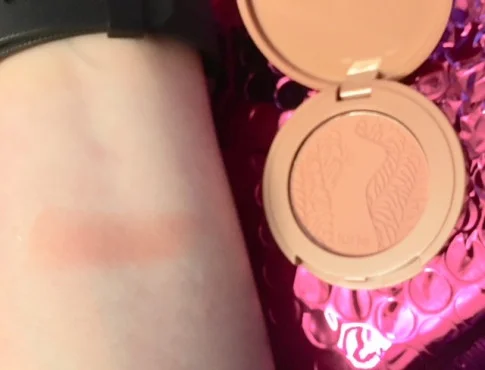 I really love this blush I have used my other one to death and you can see the tin it's in. This one is a lighter tan color with a hint of pink. It's a great shade especially for my skin tones. It's just dark enough to be effect without being so dark that it looks ridiculous. Tarte never does me wrong. This one is a great blush to have with you.