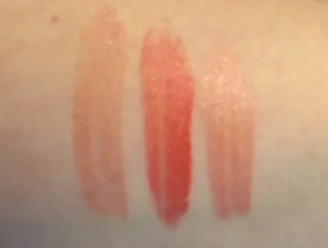 This one was a simple sample pack of 6 colors and an applicator. I decided it would be easier to break them down into the sets of 3 of each side below.