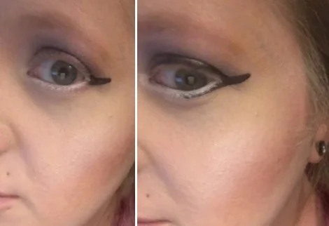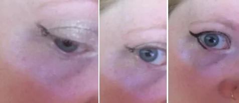 The 1st picture is right after the stamp. It worked a lot better but I also used a different eyeliner. The 2nd picture is after I filled it in and added some to it.