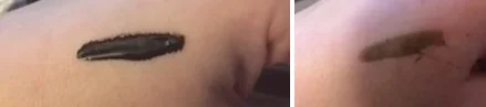 I 1st tested this on my hand before my eyebrows. As you can see it goes on basically like a black gel then you peel it off and you get this weird brown color. This was literally the lightest color they had.
