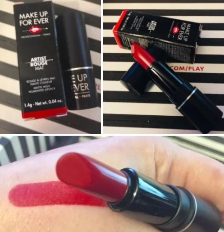 I really like Makeup For Ever. I feel like at this point I've tried a little bit of everything they have to offer. I love lipstick so I'm always excited when I get it in a box. I always get a red or a pink never anything else. I'm ok with that. This one is a super bright red which goes on with ease and looks amazing on. It didn't dry out my lips or anything so it was a big plus. I really like.