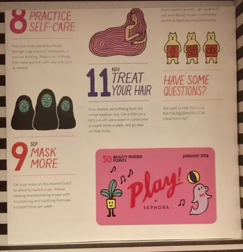 This month Play! the box came with a list of ways to be beautiful in 2018. The theme is here's to a Beautiful 2018. Which is actually great on filled with good vibes.