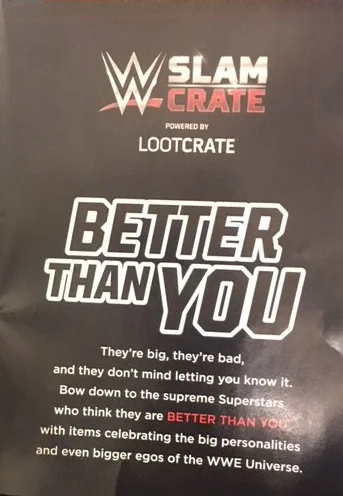 I'm pretty happy with this box. The stuff it wasn't too bad to the point it's going to be useless to me. I still wish they would mix it up and include other superstars in the crates. I do feel like they could have put others in this box. It thinks Dolph Ziggler would have been a good choice since he does like to tell people is the best. Plus this one was a complete group of Heels aka the bad guys.