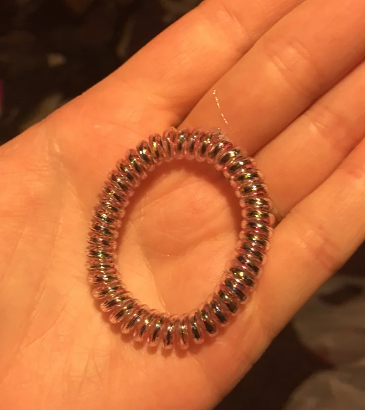 These are Invisibobble which is an elegant coiled ring which reminds me of a telephone curly q. Which trust me I thought it looks insane for a hair tie