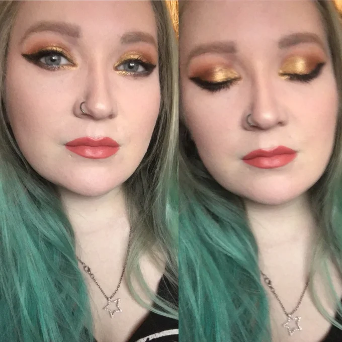 Here is a look I created with this bag. I used the color correcting under my foundation, the eyeshadow palette on my eyes and the liquid lipstick. I used the brush to apply my bronzer.