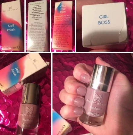 I have gotten a polish by this brand before and I loved it. This one was no different. The color is in Girl Boss, which I was afraid would be too light and it was perfect. I did have to use 3 to 4 coats though. This stuff is tough with minimal chipping and lasts a good while. I painted my nails on Monday and still have most of it on without issues. I really adore this brand and I was actually looking to purchase more of it before I got this bag.