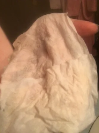 This was the wipe after with basically nothing on it. I am so disappointed with these. In theory, they are great wipes infused with crystals it's right up my alley since I'm obsessed with crystal. However, these aren't worth it. I don't know if I bad pack or if they leaked or what happened.