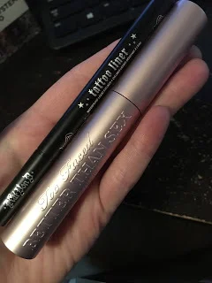 The kit also came with Too Faced Better than Sex Mascara and Kat's Tattoo Liner. Which I love they are great. Better than Sex makes your lashes look super long and the Liner goes on smooth and dark and it's easy to smear which I love.