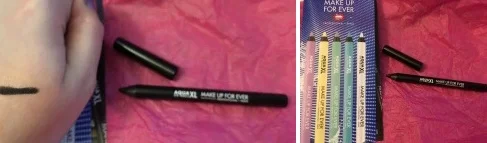 Aqua XL eyeliner in black by Makeup Forever. I love this eyeliner. I have gotten it before in a Sephora box. It goes on easy, it's super dark and it's hard as hell to get off once you put it on. I haven't had any real issues with it. I'm a big fan of the brand and everything I've gotten from them has been amazing. It's worth having in your makeup bag if you are on the go. Only suggest is where it's long lasting which is good if you want something that lasts all day, but bad if you suck at eyeliner.