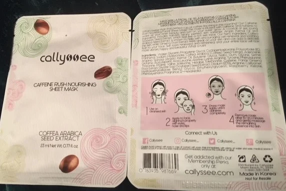 This month they included a duplicate of the same sheet mask. It's a Caffeine Rush Nourishing Mask. There is a faint smell of coffee to it and it's not a weird shape so that it doesn't fit my face so I was pleased by that alone. I left the mask on for 20 mins and could literally feel my face waking up. Once I took it off I let my face soak in all the sheet mask goodness. It did leave me feeling a little sticky afterward, which I eventually just washes off in the shower. It's a good mask but not one I would buy myself.