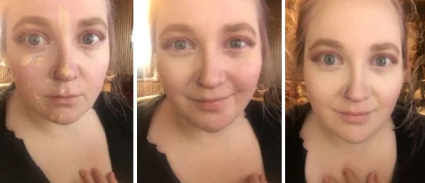 Right- is the full foundation and concealer applied, So you can see how you can build add onto it without it being cakey.