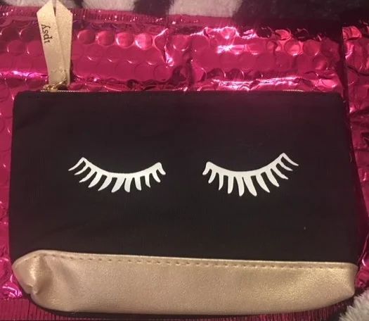 This is a simple cute bag. I'm not sure if it's supposed to be sleeping or just trying to show off these lashes. I really like it and the Color blocking on it really adds to the overall design.