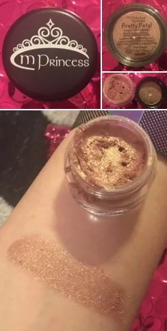 mPrincess is a brand I have gotten before. It was an eyeshadow actually I have a silver metallic. It's such a good formula that it's hard to really forget. They are really pigmented and easy to use to your advantage. This one came in the shade Pretty Petal which is a perfect name for this rose gold. This eyeshadow is almost multidimensional with the shimmer and glitter is packs in just one swipe. This one can be applied both wet or dry. Also, it's so lightweight both ways that it's not falling short. Honestly, the picture really doesn't do it justice. This one can be used of course as an eyeshadow but also a highlighter it packs so much shine to it.
