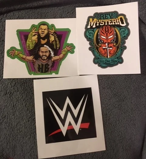 Sticker pack that includes the WWE logo, The Hardy Boyz and Rey Mysterio. I adore both Rey and The Hardyz so I like these. They could have gone with someone else those. I say that cause there are a ton of high flyers in the WWE.
