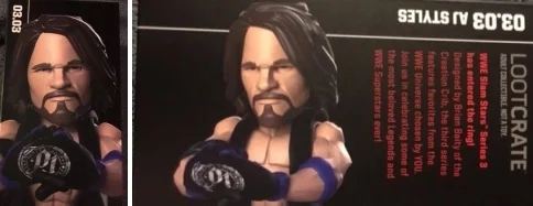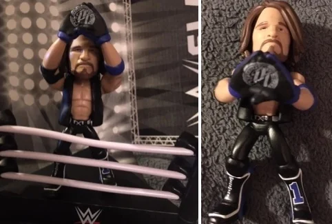 They are still including these wrestling figures in the box. I have like 4 sets of them at this point. Actually, it's more like 2 and a half cause 2 are still in the boxes. This one us AJ Styles, which don't get me wrong I adore AJ but he was also on the poster so he is in here twice.