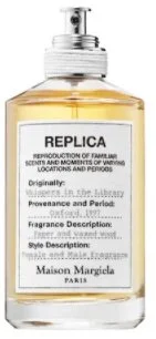 Replica Whispers in the Library. This is one I haven't gotten yet and I always appreciate a new sample scent. This one is lovely. It's really warm and actually reminds me of a library. It's got this rich vintage floral scent which a touch of some kinda liquor. I like it but I don't know if it would buy it again.