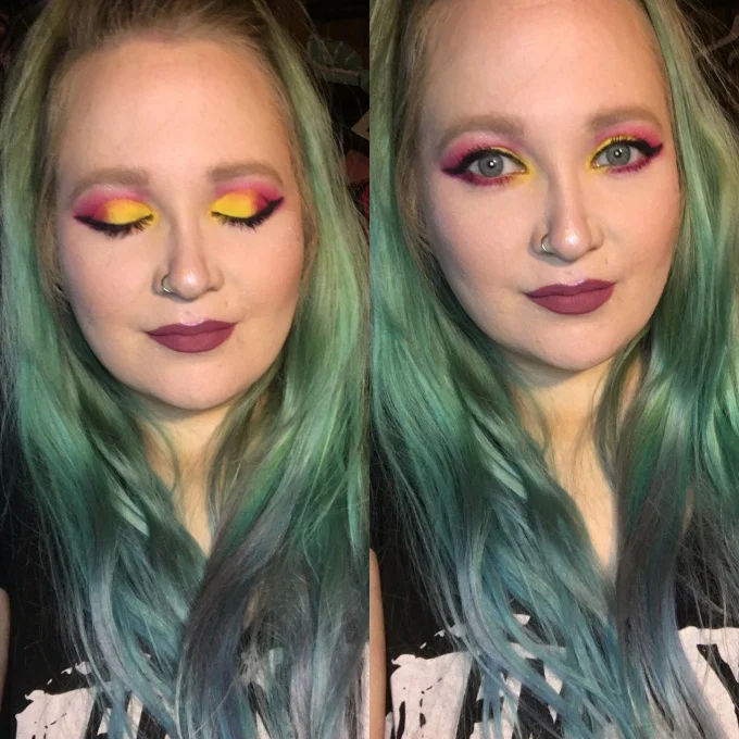 I have had this palette for about a month and I have created a few looks mainly with the same colors. I am really obsessed with the 2 bottom row since the shades are so bright and vibrant I'm attracted to those immediately.