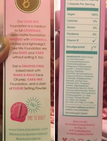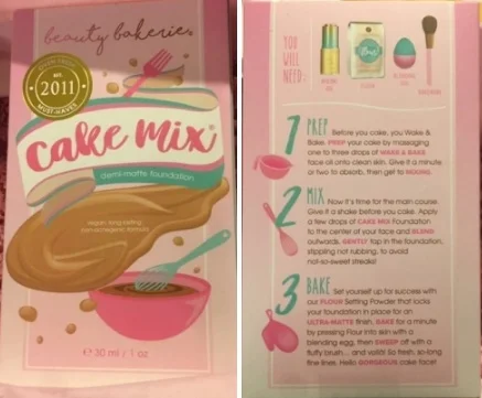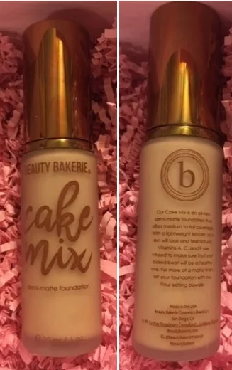 Cake Mix Demi-Matte Foundation. This package is super cute. I really love how they have it set up like a box of cake mix with the ingredients and instructions on the back of it. Also, it did make me panic since I didn't get the face oil the 1st round since it was a prep ingredient. The setup threw me honestly cause mentally it's like a cake it needs the ingredients.