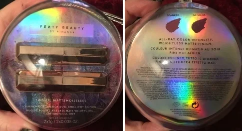 Here is an up-close look at the front with the lipsticks still in the package. I really love the icy metallic look of it, which really carries through most of the Fenty products. Also, I really adore the mini mirrored lipstick and octagon shape of them. All of the Matte lipsticks are designed this way which really makes them stand out.