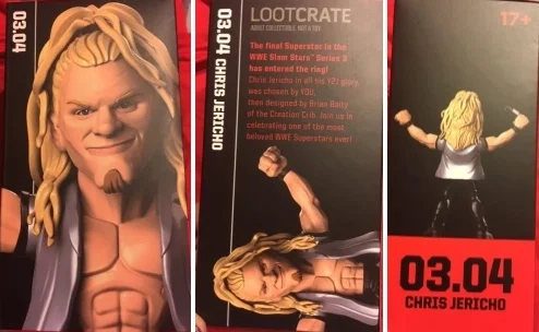 This may be my favorite figure I have gotten in one of these crates. The hair is perfect and the shirt is covered in rainbow glitter that really adds to the whole look. Also, they gave him a mic which is perfect since he has to be one of the greatest on the mic in general. Plus if you have been a fan as long as I have them you remember the countdown clock they use to have as part of his entrance which evolved into the light up jackets. Seriously he can make an entrance. I'm glad this is the one included since he has moved on to AEW now and won't be included in things anymore.