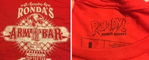 Finally, the shirt this month is Ronda Rousey, who I guess knows how to make an entrance. Honestly, theme alone is wonderful. This is a super bright red shirt which I'm not really into. I do like the design of the shirt with the Arm Bar like pub look to it. The Tag has her name on it which is a nice hidden detail. I will wear it but probably not a lot since I don't really look good in red.