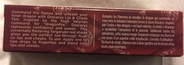 Let me start off by saying I don't care for lip or cheek stains since they usually don't work well for me. However, this one has the best name. Dracarys is such a powerful word, if you watch the show then you know that.
