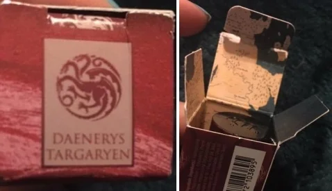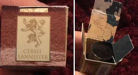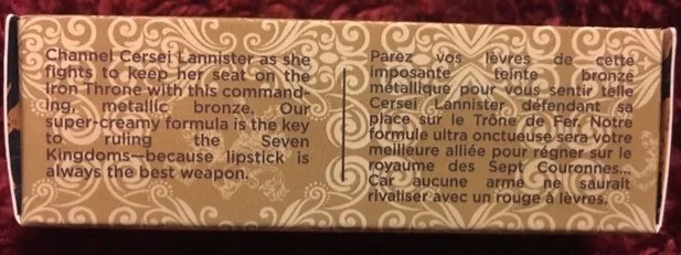 Cersei Lannister, the Queen bitch we all love to hate. Damn if she doesn't always find a way to get what she wants sometimes. The box for this is Lannister's gold with lion symbols.