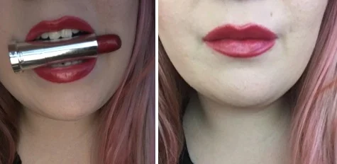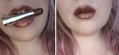 This shade is a metallic red that has a lot of pink tones to it. The color gives you that nice red lip with a shine to it and I love it. I have been able to wear it as a red lip but also pair it with some pink makeup and it works amazing.