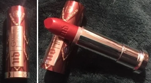 The lipstick itself comes in this lightweight tube as usual UD lipsticks do. The lid has the same design as the box with the Stark symbol.