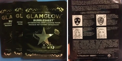 Glamglow Bubblesheet masks. I'm a big fan of Glam Glow but it's a little out of my price range sometimes. These have been on my to try list but I had yet to purchase them. These are their bubble sheet mask which the name alone is legit to what it does. When you open the package there is a black sheet mask in there that you have to unfold and put on. Instantly it starts bubbling up. It's like the moment the air reaches it activates. Within minutes the entire mask and your face are covered in black foam bubbles. You are only supposed to leave this mask on for 5 mins I left it in for 10 and it was intense bubbles. I took it off, washed off my face, and it was squeaky clean with a little glow. I dig these and will have to invest in more of them.