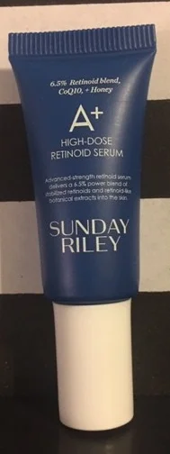 Sunday Riley A+ high dose Retinoid Serum. I really like the brand and everything I have tried from them over the years. This one is a light serum that is easy to apply. It kind of gives your skin an instant glow. I have used in the morning and at night before bed without too many issues. I do have a little oily around my nose but it's not bad. Also, it does leave my skin super soft and with that slightly glow. I like it and would buy it again if it wasn't so expensive.