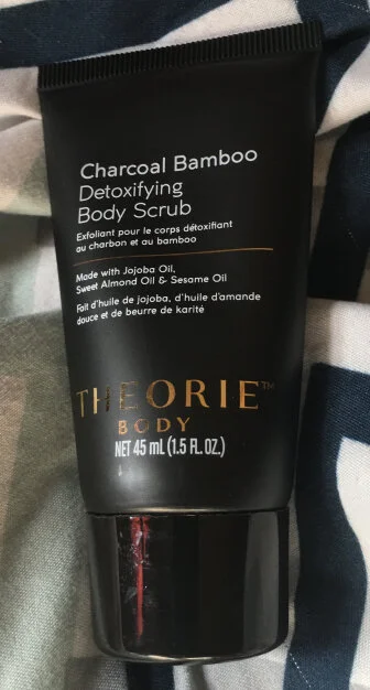 Theorie Charcoal Bamboo Detoxifying Body Scrub. This is a brand and something I've never tried before. I do always appreciate a scrub of any kind though so I was excited to try it. This is a thick gel that is packed full of scrubbing power. It doesn't lather up really well which I expected since it was a gel. I had to use a quarter-sized amount on all my limbs to make sure I got everything. It also has a slight mint to it which is nice. It did leave my skin feeling polish and clean. I like it's but I don't think I would buy it again since I had to use so much of it. This one would be good for just for a spot scrub.