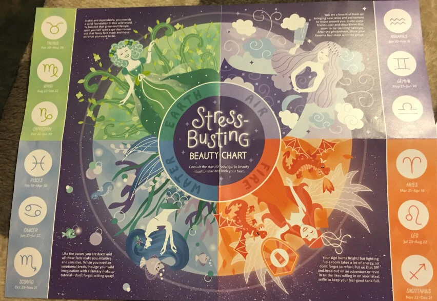 This month's theme is Stress-Free Beauty. They went with an astrology theme for it. Which I really dig and make put this up somewhere. They still aren't doing the play card for points anymore.