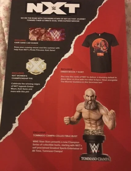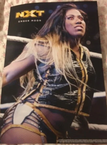 The back has this mini-poster of Ember Moon whose isn't even in NXT anyone she went to the main roster maybe a year before. So they could have picked someone actually still there.