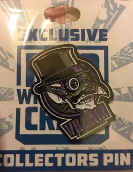 This is a Marty Scrull Villain Enterprises logo enamel pin. I really like the overall design and the colors this is going on the pinboard.