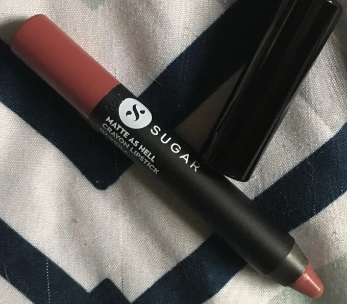 Sugar Cosmetics Matte as Hell Crayon Lipstick in Viola. I really like this brand and haven't had any issues with stuff I've gotten in these bags before. The shade is a reddish-brown that looks great against my pale skin. This one is perfect to contour your lips then you can fill them in. This is a creamy formula that doesn't dry out my lips and lasts for hours. I would buy this again.