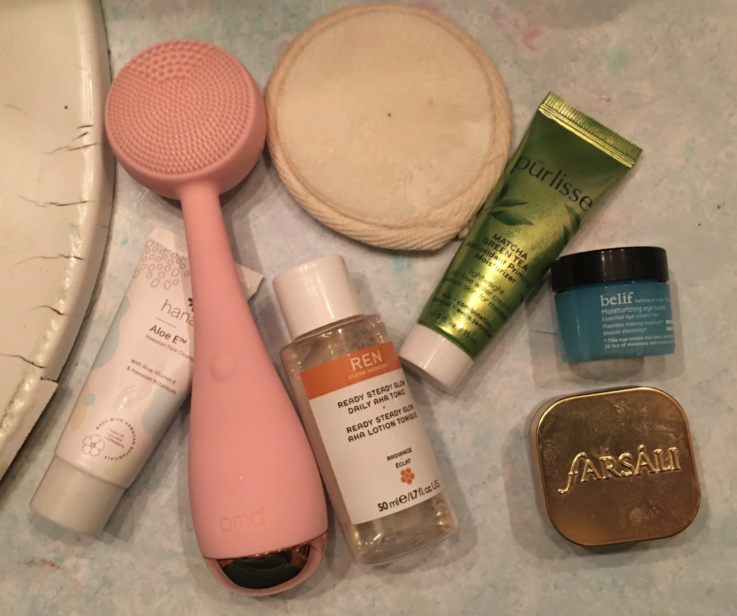 Hanalei Company Aloe E Face Cleanser with my PMD Beauty Cleansing Brush.