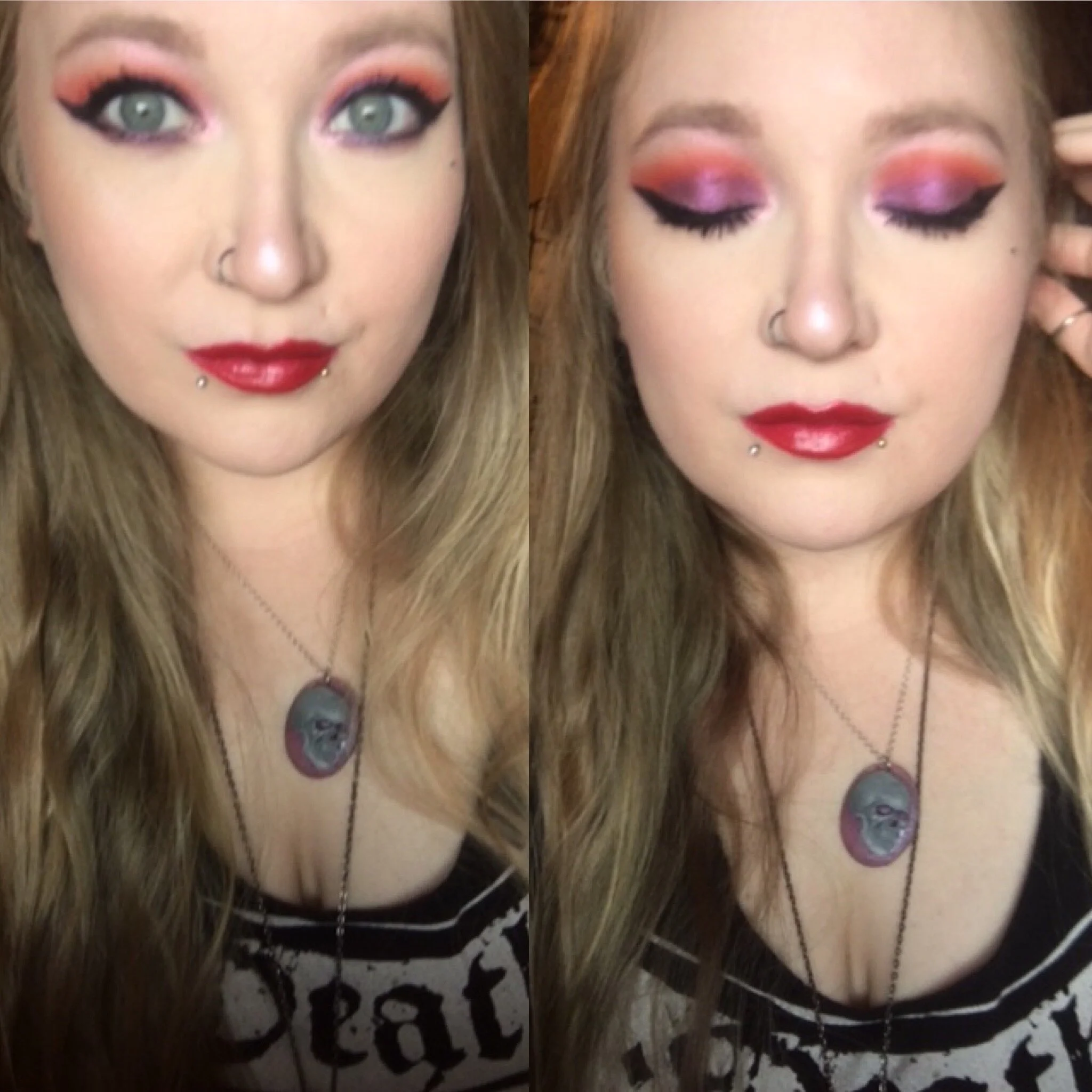 These shades are blendable, buildable, and don’t have a whole lot of fallout. The shimmers are a little creamier than the mattes but not as creamy as the ones in the other palette are. This is a tiny palette so you can create several looks out of it and then just toss it in your bag to take with you. I really dig the purple and red in this one since they just go together so well. I will be using the palette to death I’m sure.