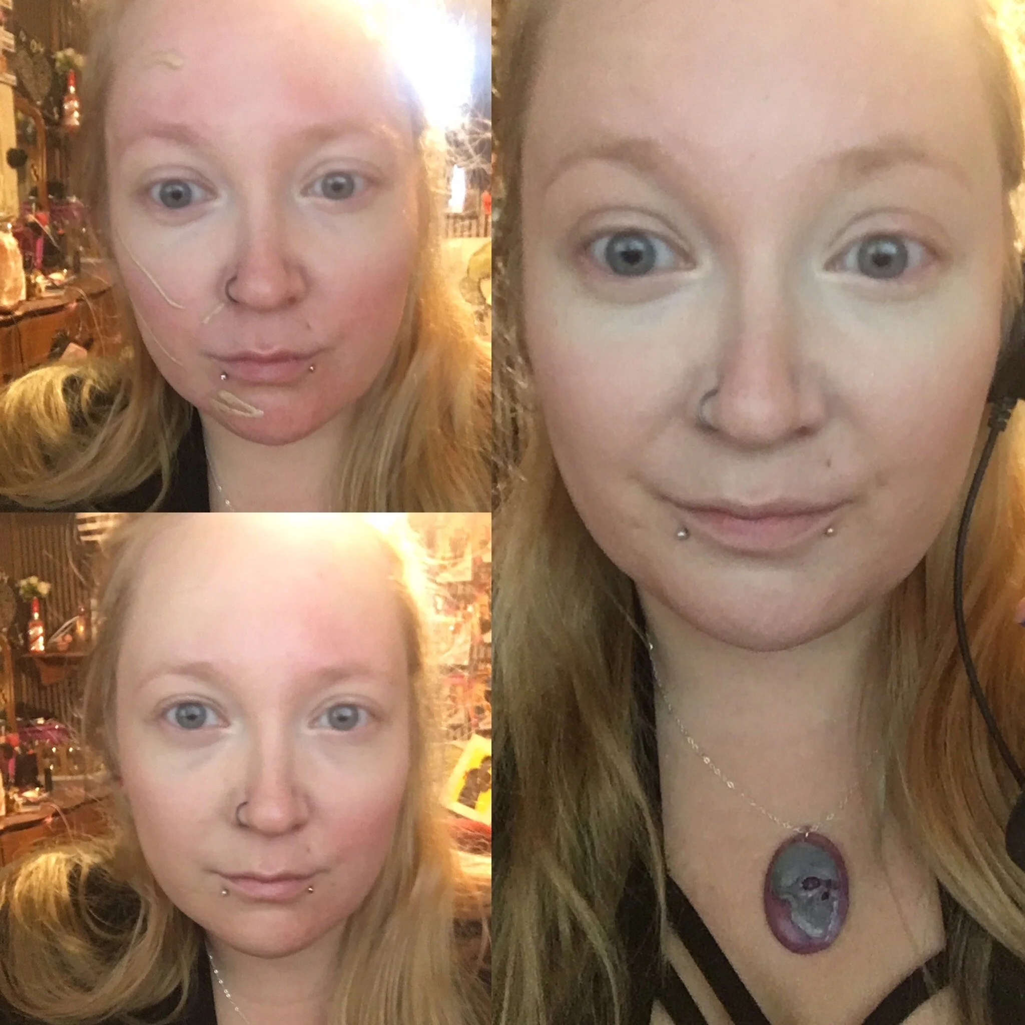 Bottom Right - it’s been applied to the left half of my face so you can see the difference.
