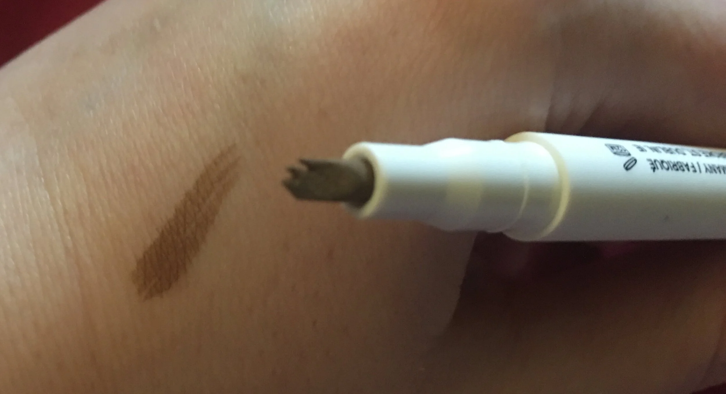 Middle- I have done my left brow. The pen is dark enough to actually make my brow more noticeable compared to the right.