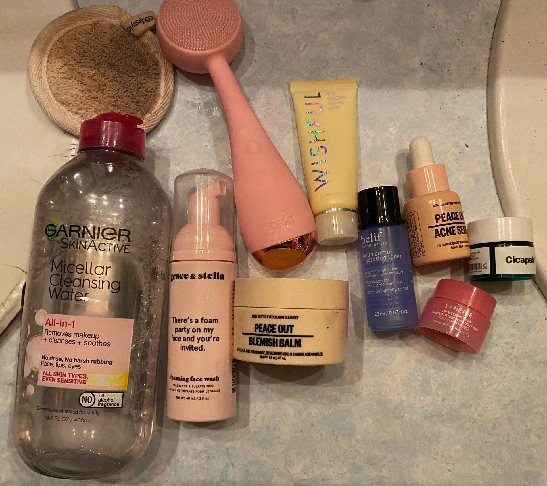 I wash any excess off my face with Grace & Stella Foaming Face wash and my PMD Beauty Brush.