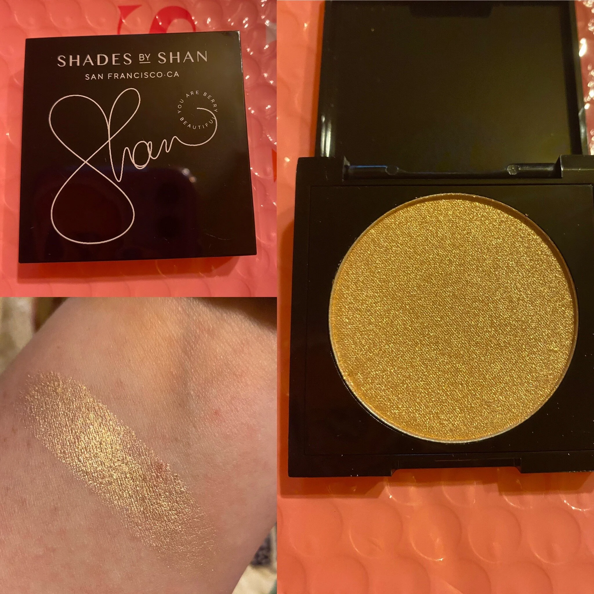 Shades by Shan Highlighter Single in Irma. This is a brand I’ve never heard of before. I love highlighters tho so I was excited about it. This one is creamy and applies with ease. I was able to pick up just a little of it and still get the full shine. Also, it’s buildable if you want to add some extra. This is a light gold that works well for my skin tone. I like this one and would buy it again.