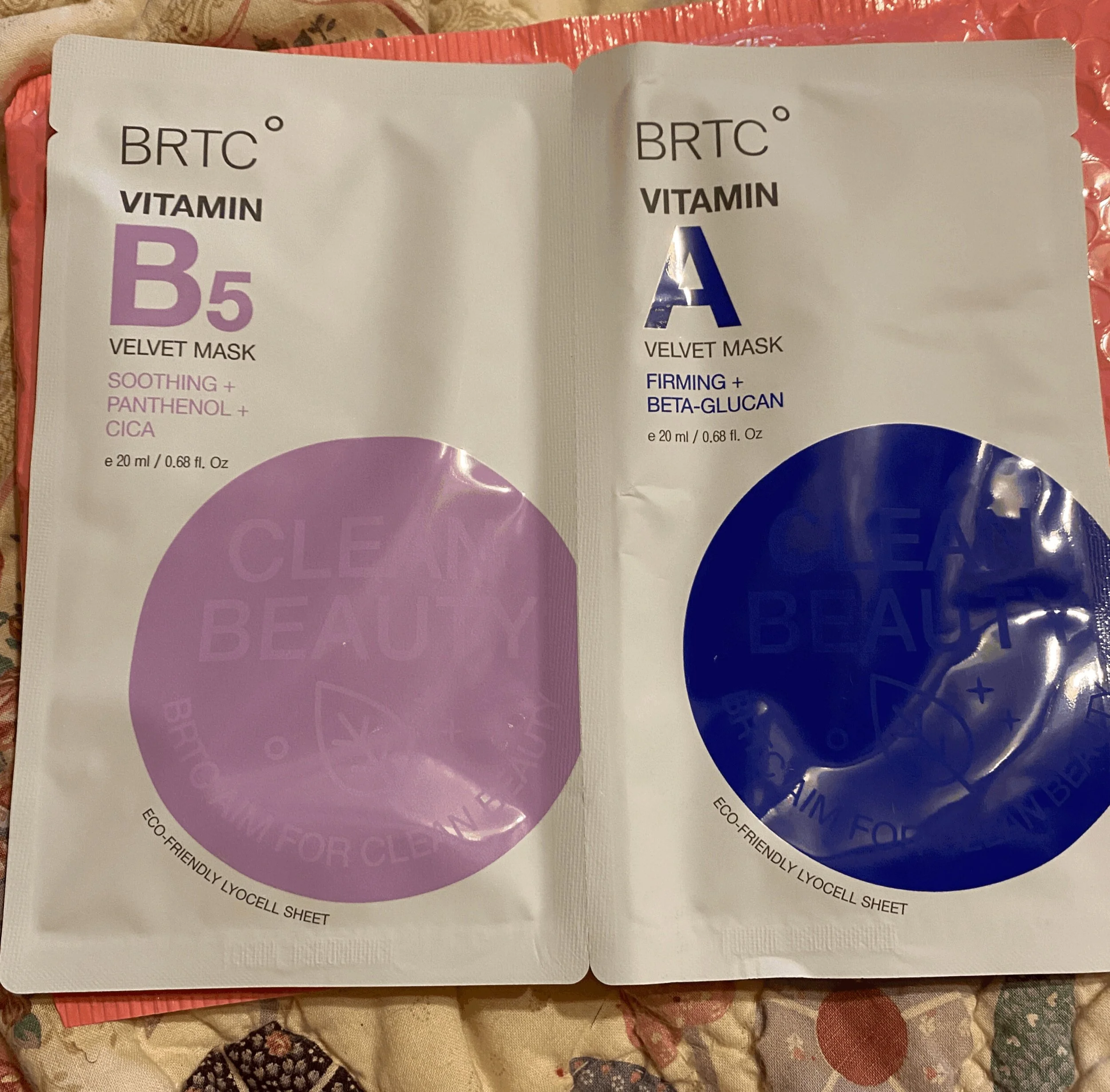 BRTC Vitamin B5 Velvet Mask & Vitamin A Velvet Mask. Another brand I’ve not heard of. This mask took forever to unfold it was so wet. It was easy to apply and didn’t sit weird on my face or anything. I left it on for 15 mins and it had a cooling effect that was nice. I took it off and massage what I could of the product in, then let the rest soak in. I liked it but it didn’t really do anything different than any other mask.